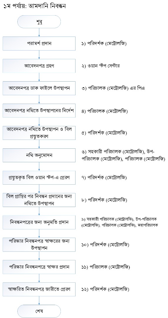 (ক) প্রথম পর্যায়: ওজন ও পরিমাপক যন্ত্রপাতিসমূহের আমদানির নিবন্ধনপত্র (Import Registration) প্রদান: